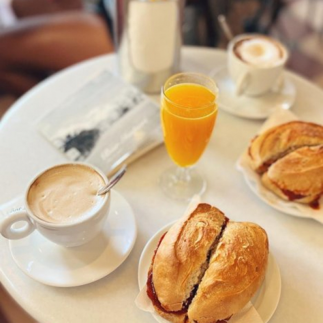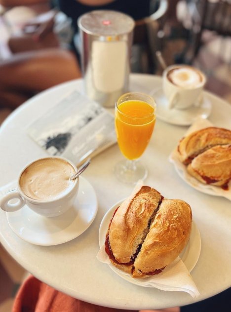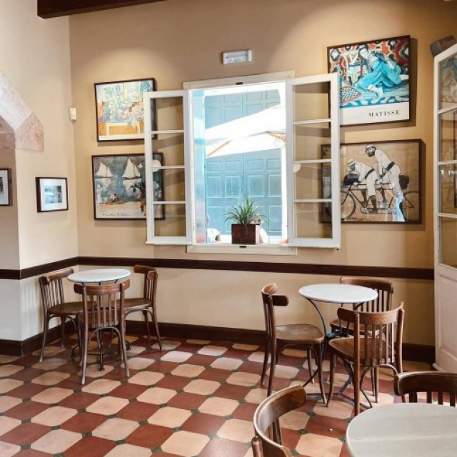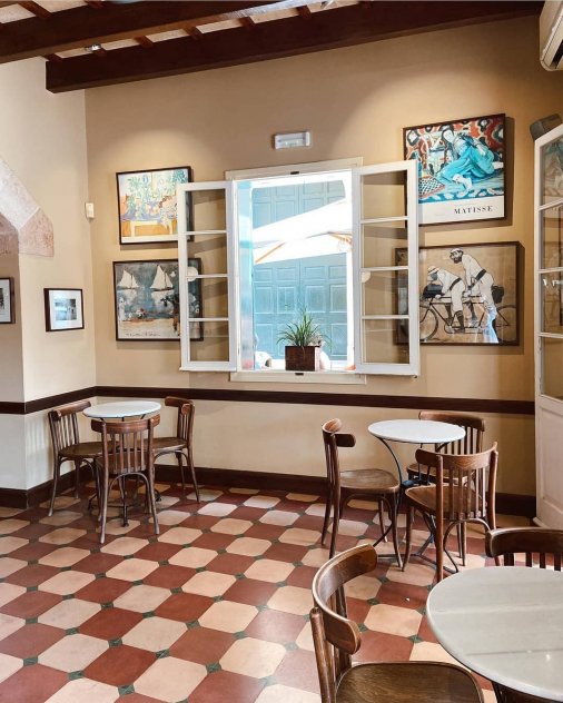 On the north east corner of the enchanting square Plaça des Born ...Plus d'information . Great cafe Bar with a perfect offering for a trditional spanish breakfast.