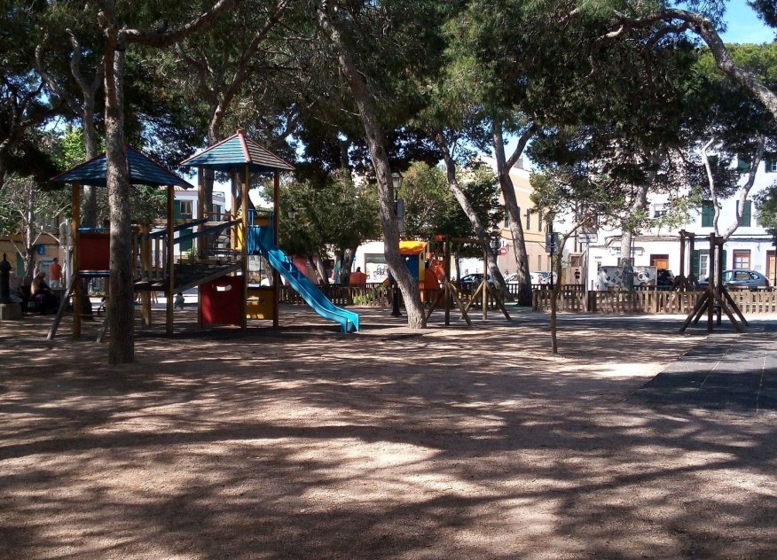 Pine tree filled square with seating and shade. Bar restaurants around the square including ice cream specialists make this a popular spot for youn families.