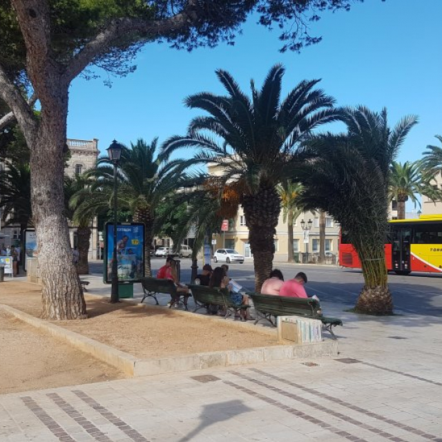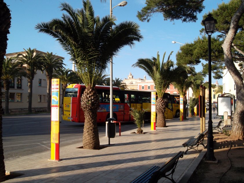 Ciutadella's city centre bus station located on the edge of the square