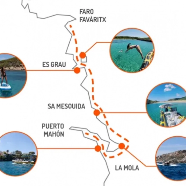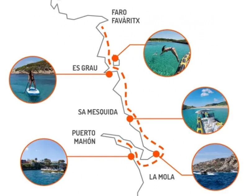 Excursions on the south coast and the north coast of Menorca with a fast boat to discover places only accessible by boat such as caves, virgin beaches and islands.