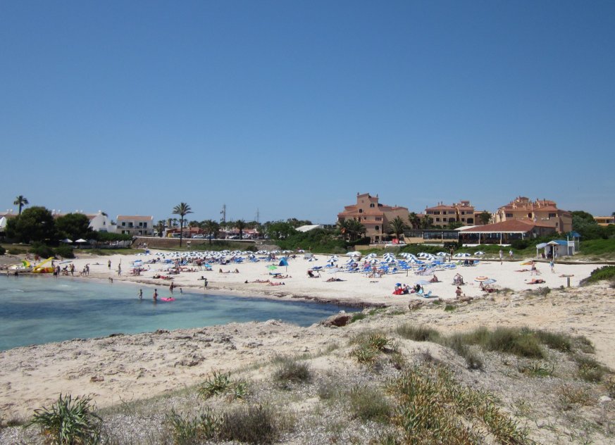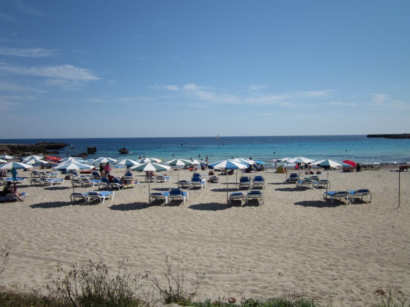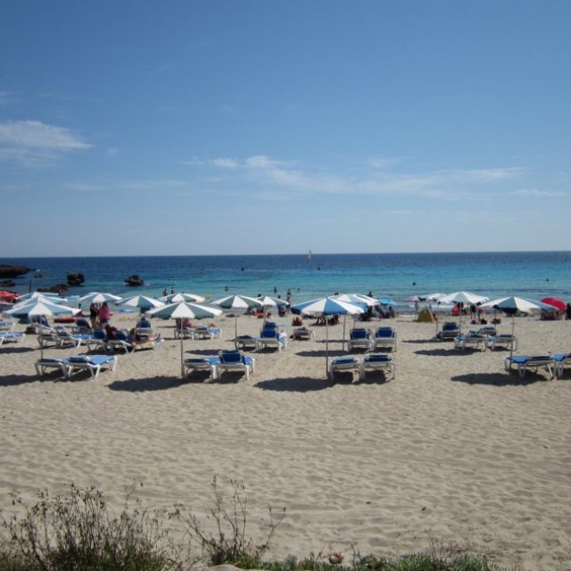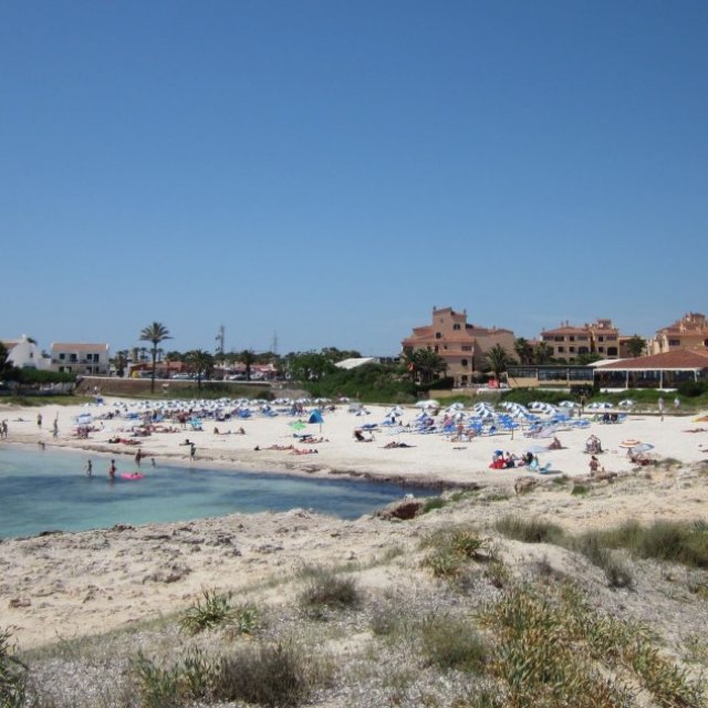 Cala en Bosch is one of the islands few purpose built modern Holiday resorts and consequently has a high proportion of hotel beds so the beach can be crowded in peak season, especially as sun loungers area takes up a big part of beach Grrr!
