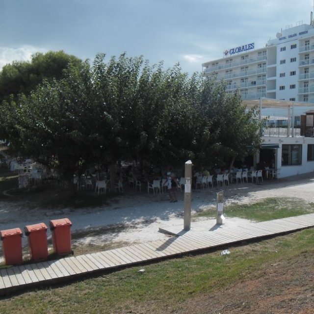 Wooden walkway for crossing with buggies. 5min walk is the much smaller beach at Son Xoriguer.