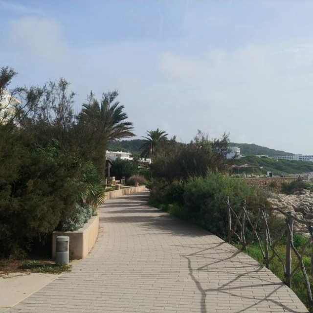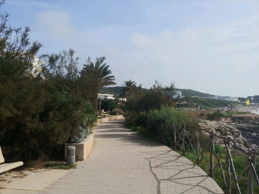 On the south coast next to Son Bou. In fact three beaches, Playa Santo Tomas (the largest) and Playa San Adeodato separated by a headland. The third is the beautiful Virgin Beach of Binigaus.